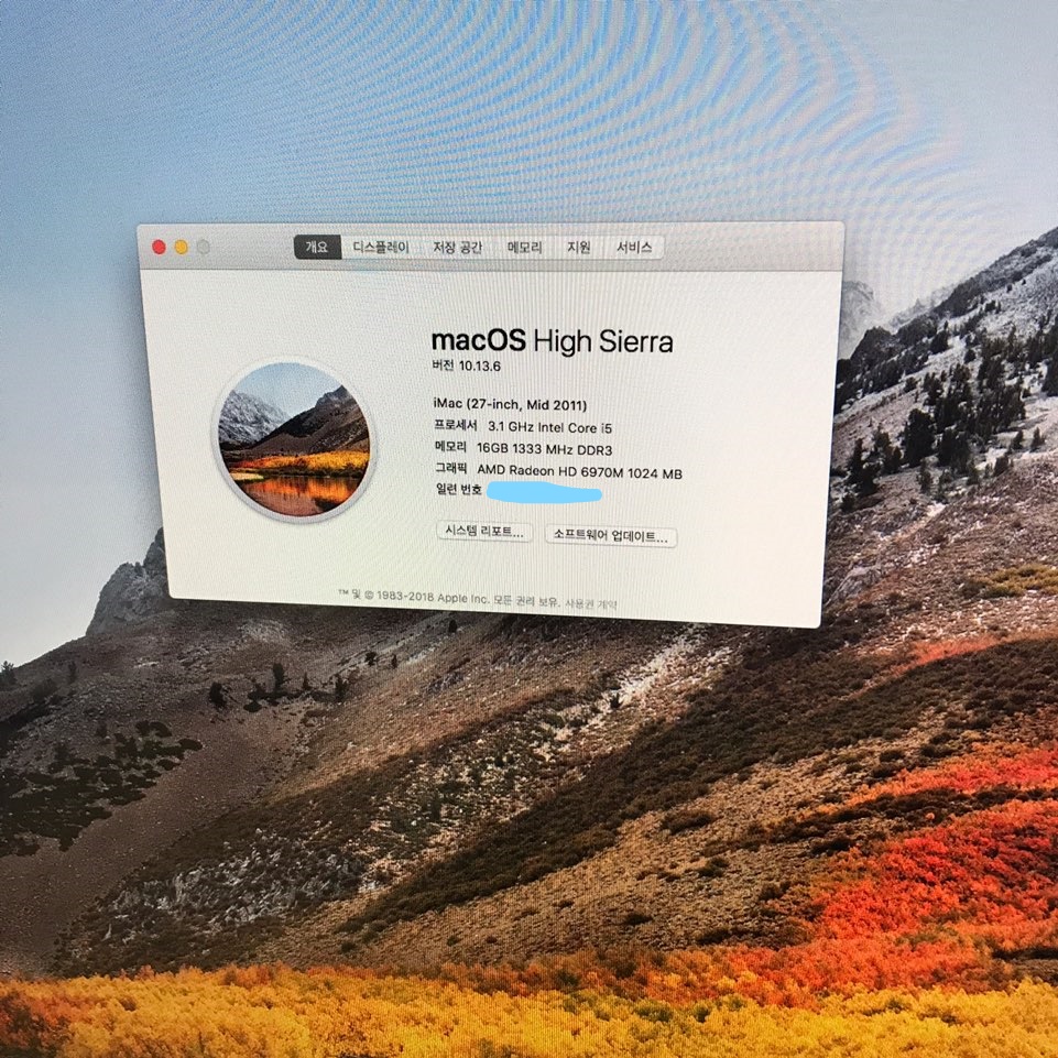 mac os 하이시에라 클린버전으로 설치되여있습니다